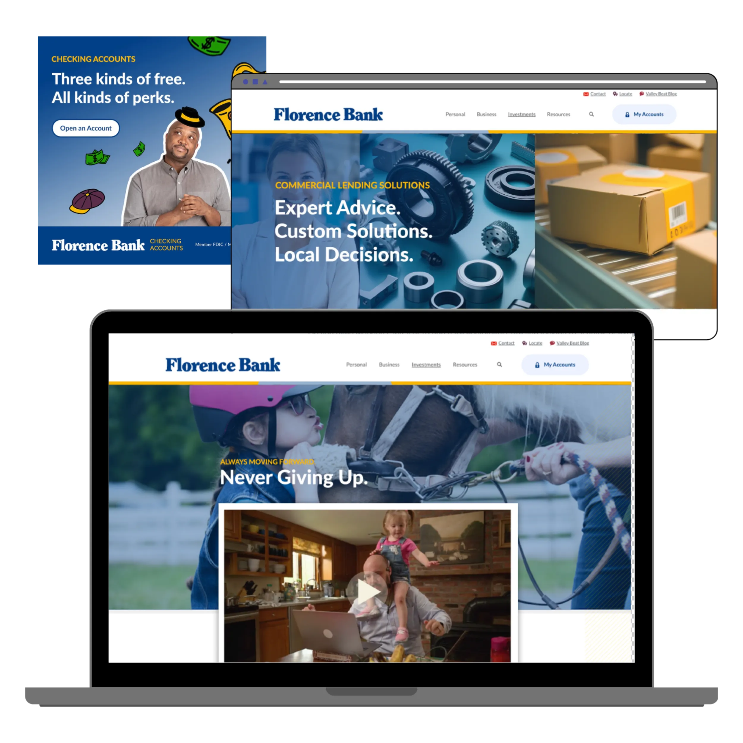 As a community bank, Florence Bank needs to make sure that it is delivering for its local customers, as well as expanding its customer base. Using digital marketing to deliver its message is a key component of their overall strategy, but it needs to be done in a matter that meets financial compliance and regulations. Rhyme has worked with Florence Bank for years promoting their various products from mortgages to checking accounts in a compliant manner, and the results speak for themselves.