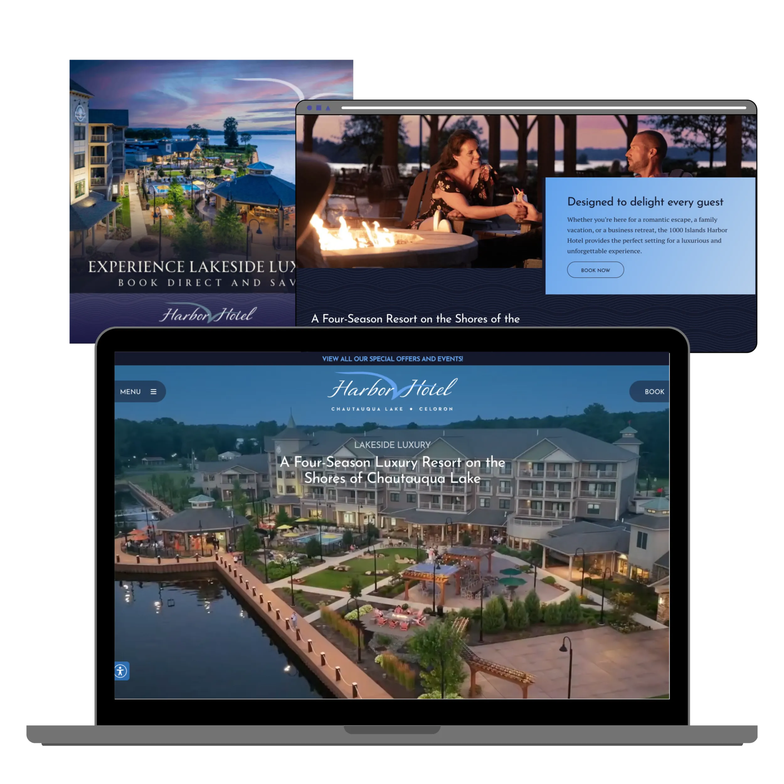 Hart Hotels operates a variety of luxury hotels in central/western New York, each with a unique waterfront setting. Rhyme was brought on to help them market these hotels using a combination of search, email, social media, and other digital marketing tactics and techniques. Since each hotel's market was slightly different, it meant tweaking the messaging and targeting for their campaigns for each audience, and optimizing each channel to convert best. This also included designing and developing websites that were easily editable and which helped track key information for each campaign.